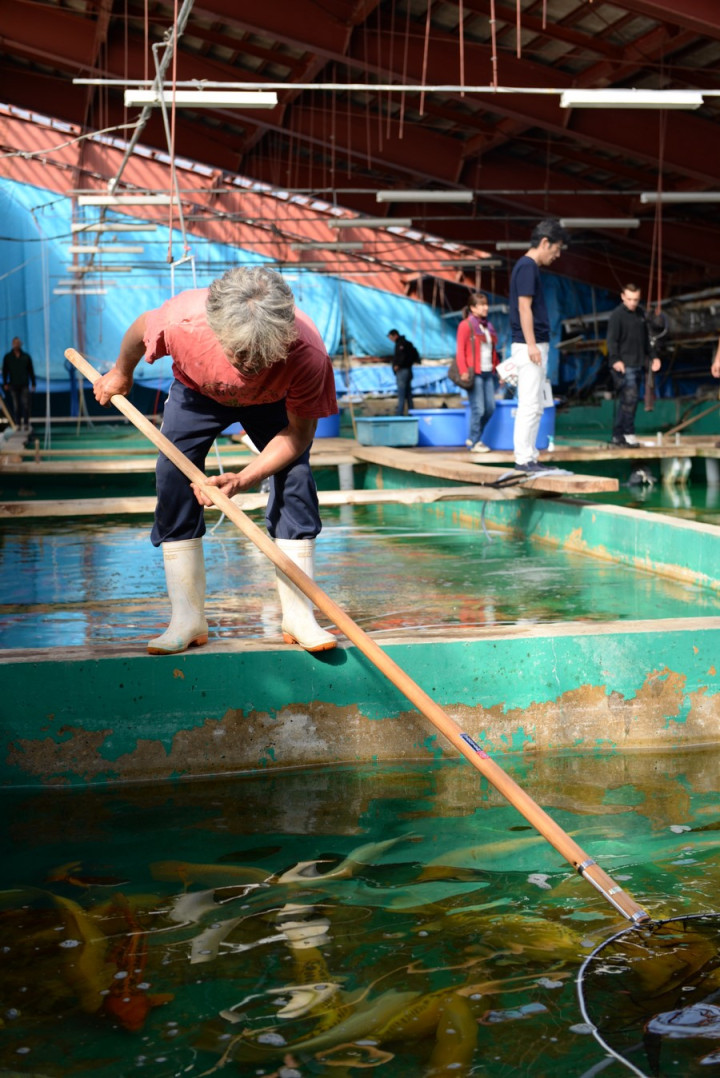 A deux pas de cette ferme se trouve le "All nagaoka koi show" où nous déambulons parmi les bassins de présentation des koïs pour le concours de la journée.