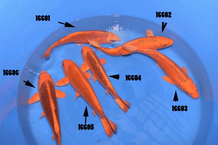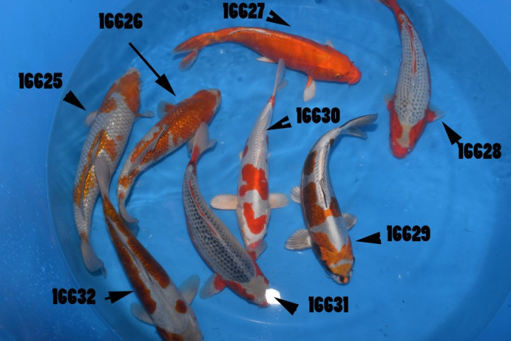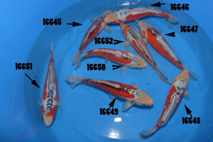 La particularité d'avoir les yeux rouges sur les karashigoi indique une croissance future importante. Nous tenons à préciser que ce sont des koïs de 2 ans pour 60/65cm.