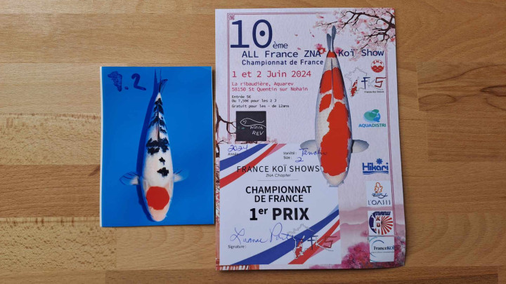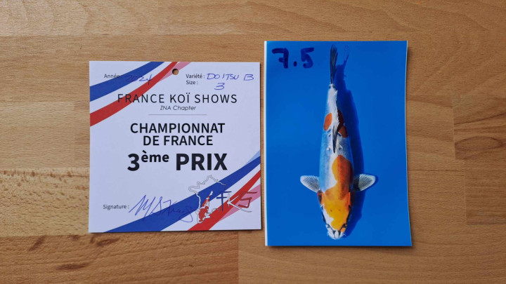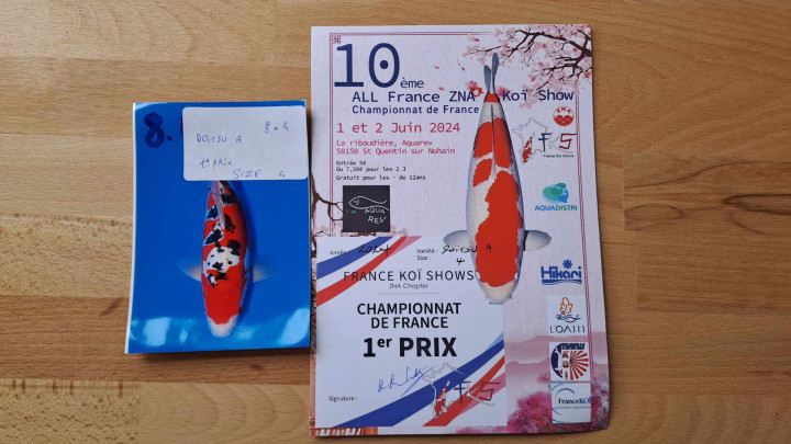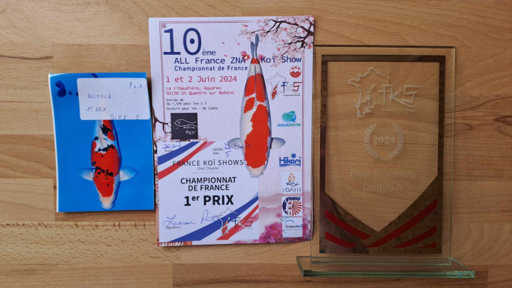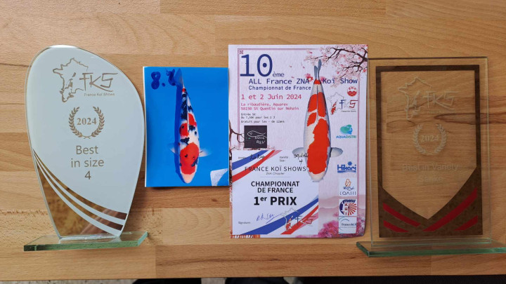 Nous sommes ravis d'avoir participé à ce Koi Show et d'avoir remporté autant de prix. Il est important de noter que nous n'emmenons jamais les Kois de nos clients, mais uniquement ceux disponibles en magasin.
