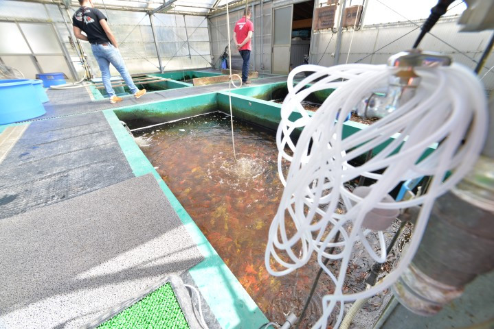 Une halte rapide chez Aoki koi farm, car nous avions appris qu’il avait eu un nouvel arrivage de doitsu sanke.