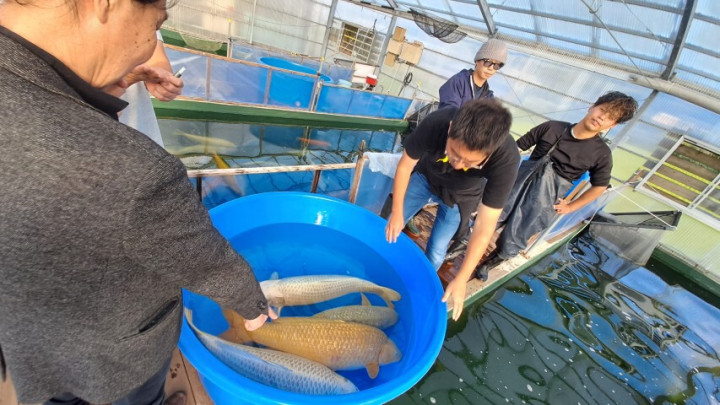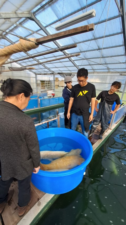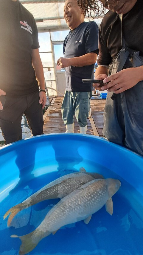Cependant, notre voyage chez Marudo a pris un tournant lorsque nous avons découvert une serre dédiée aux chagoi et aux Karashigoi. Nous avons sélectionné des chagoi mesurant de 54 à 56 centimètres, âgés de 3 ans, dotés de superbes écailles de ginrin.