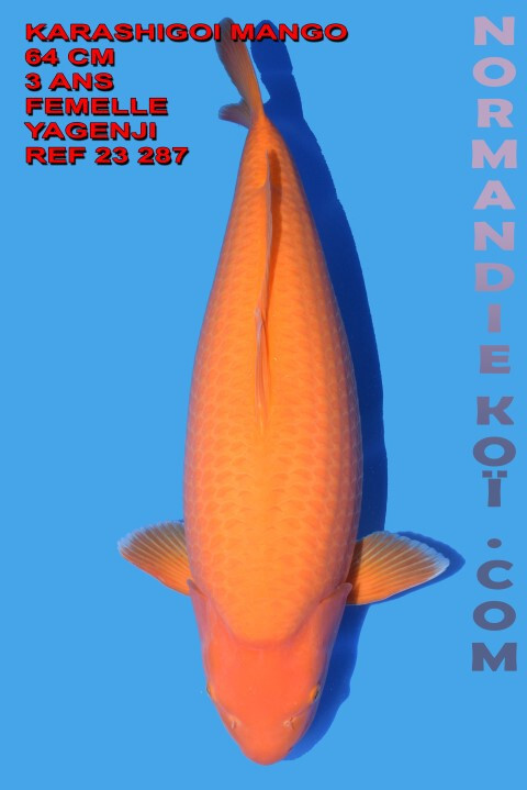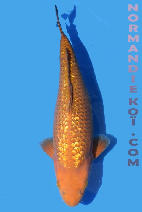 Dans la serre des koi de 3 à 5 ans, nous trouvons ce que nous cherchons : un Karashigoi Mango. Après une inspection minutieuse, nous en retenons un spécimen qui, en plus d'être magnifique, est un akamé, c'est-à-dire un albinos.