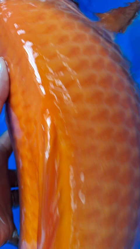 Cette particularité lui permet d'éviter les petits points noirs, appelés shimi, qui peuvent parfois apparaître au fil de la croissance des poissons. Il mesure déjà 64 cm à trois ans, ce qui est impressionnant.