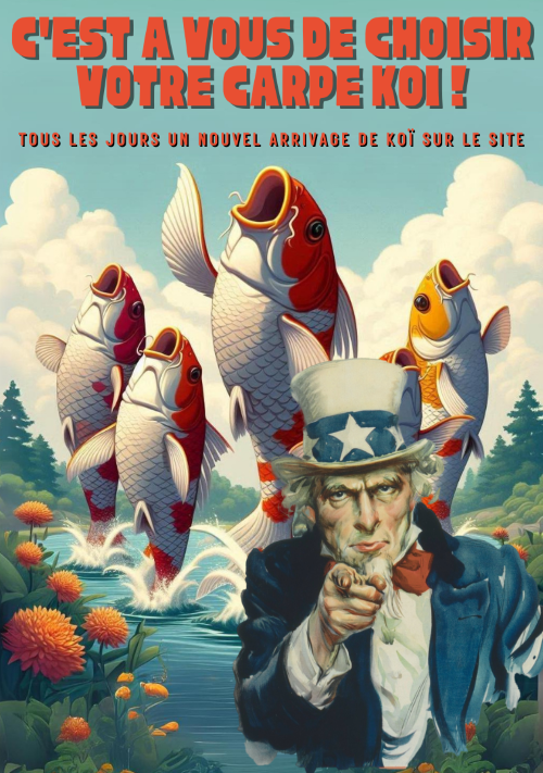 Sélectionnez la carpe Koï qui vous plaît, ajoutez-la à votre panier et finalisez votre achat via les différents modes de paiement disponibles. Vous pouvez choisir soit le retrait en magasin, soit l'expédition, qui sera effectuée à partir de mars.