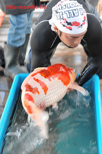 Puis nous passons à l'étape du dessus, Normandie koi choisit une chagoi femelle de 65-70cm, 4 ans à un prix très abordable.