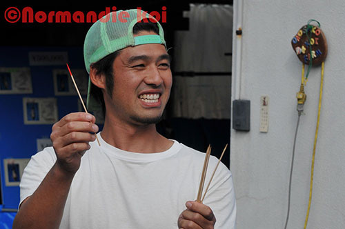 Celui qui tire la baguette rouge remporte le koï qu'il a choisi.