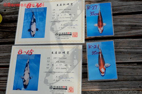 Nous posons 3 options sur les shiro utsuri de 2 ans, 45-50cm mais aussi 4 options sur des kujaku de 2 ans, 35cm