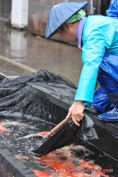 Nous trions dans un bassin, quelques koï dans les 30-35cm pour 2 ans (dans les premiers prix).