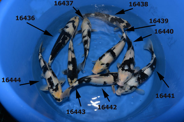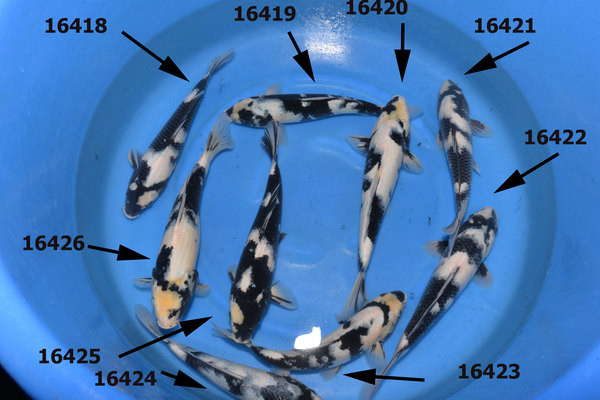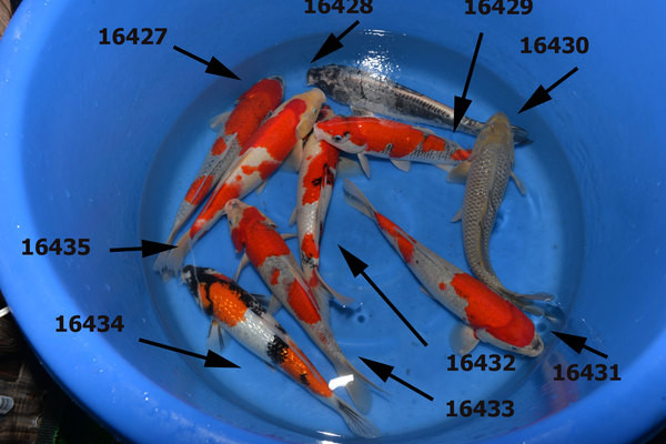Nous commençons par sélectionner des nisais (2 ans) shiro utsuri et quelques goshiki à un petit prix.