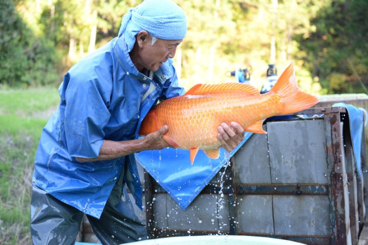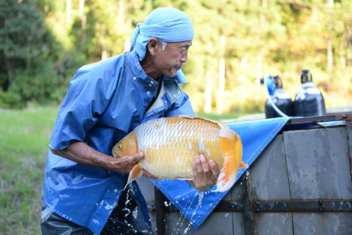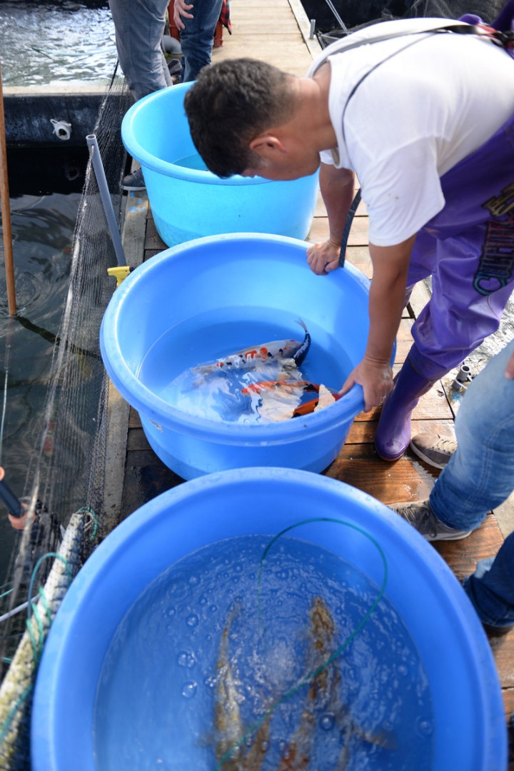 Nous apprenons que nous arrivons au juste au moment dans la saison car les éleveurs débutent leurs ikéages et qu'auparavant beaucoup d'éleveurs étaient encore avec des bassins vides.