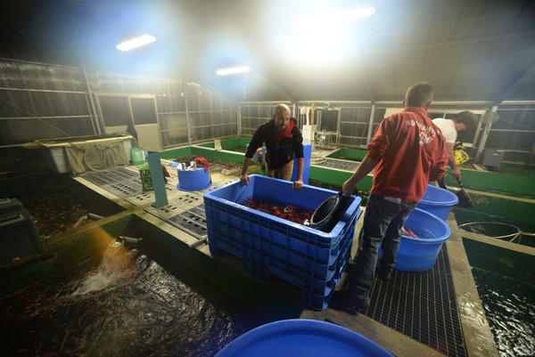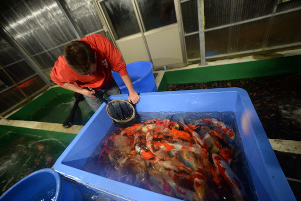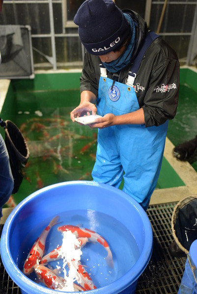 Chose exceptionnelle. Nous sommes tombés sur un jour de bonne humeur de Mitsunori, ce qui nous a permis d'acheter le bassin complet des femelles hautes qualités au nez et à la barbe de quelques clients asiatiques.