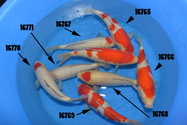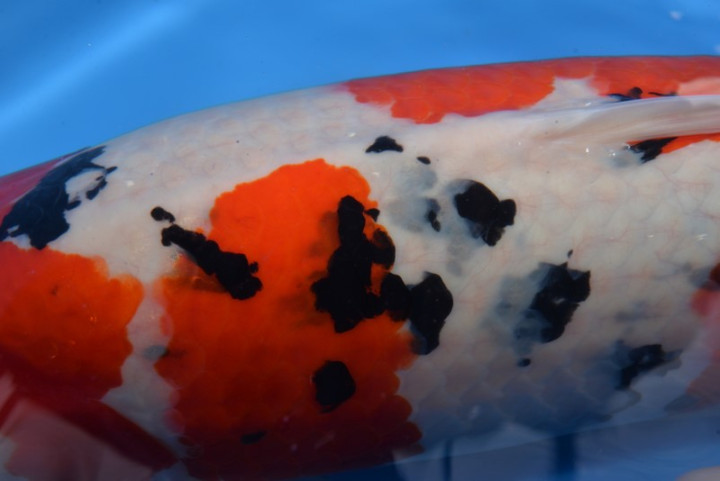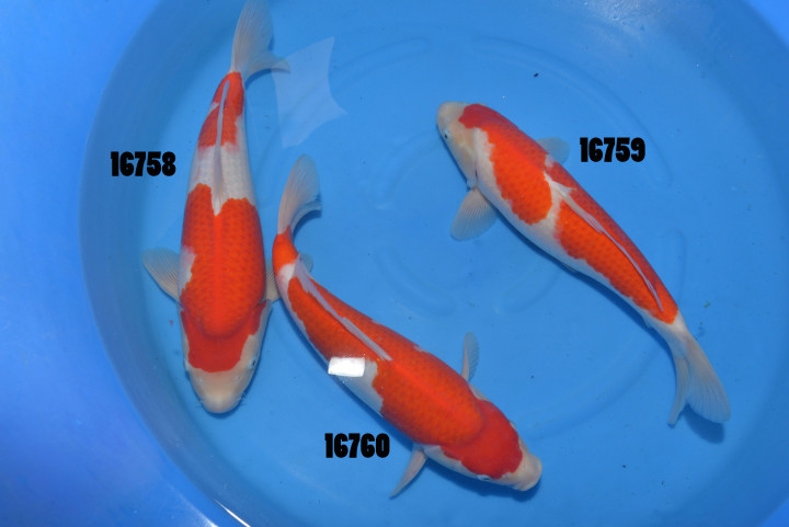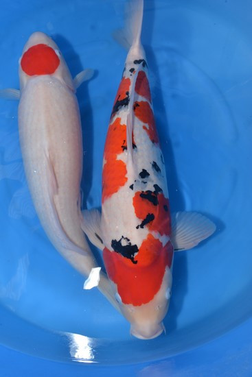 Le premier est un sanke de 3 ans 60/65 avec un tsubosumi magnifique,un koï de haute qualité !