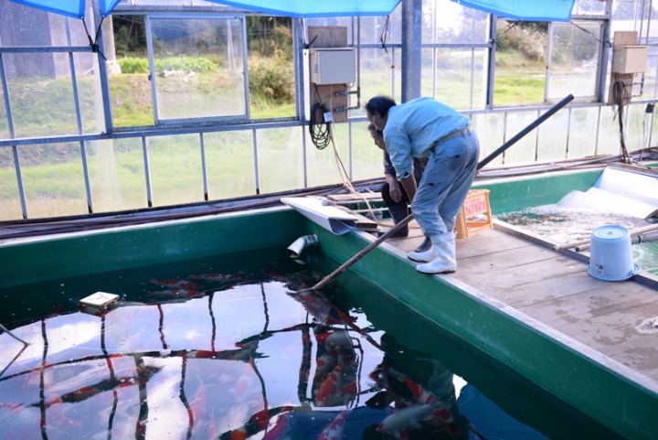 Cet éleveur a des géniteurs Sakai fish farm et nous comprenons mieux pourquoi ces poissons arborent une robe aussi rouge et intense.