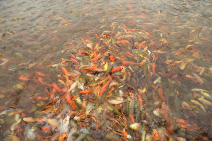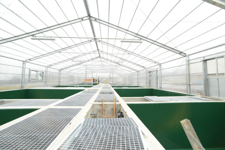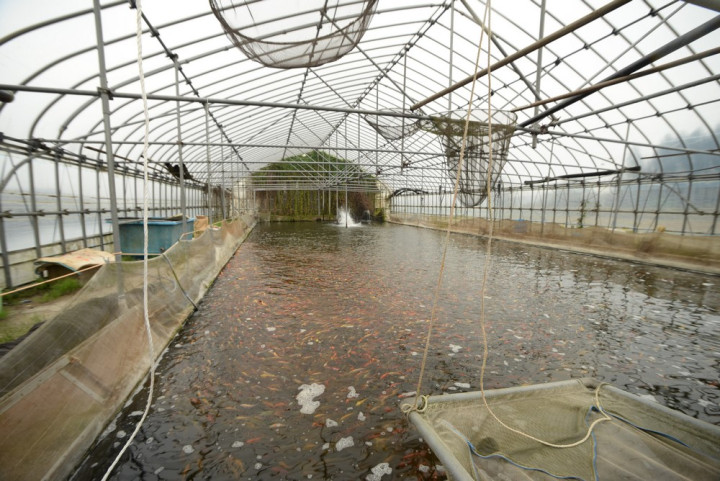Derrière cette nouvelle koi farm se trouve une serre en tunnel où je n'avais jamais mis les pieds, je me permets alors de pousser la porte et je découvre entre 40 000 et 50 000 tosais affamés, prêts à dévorer tout ce qui bouge.