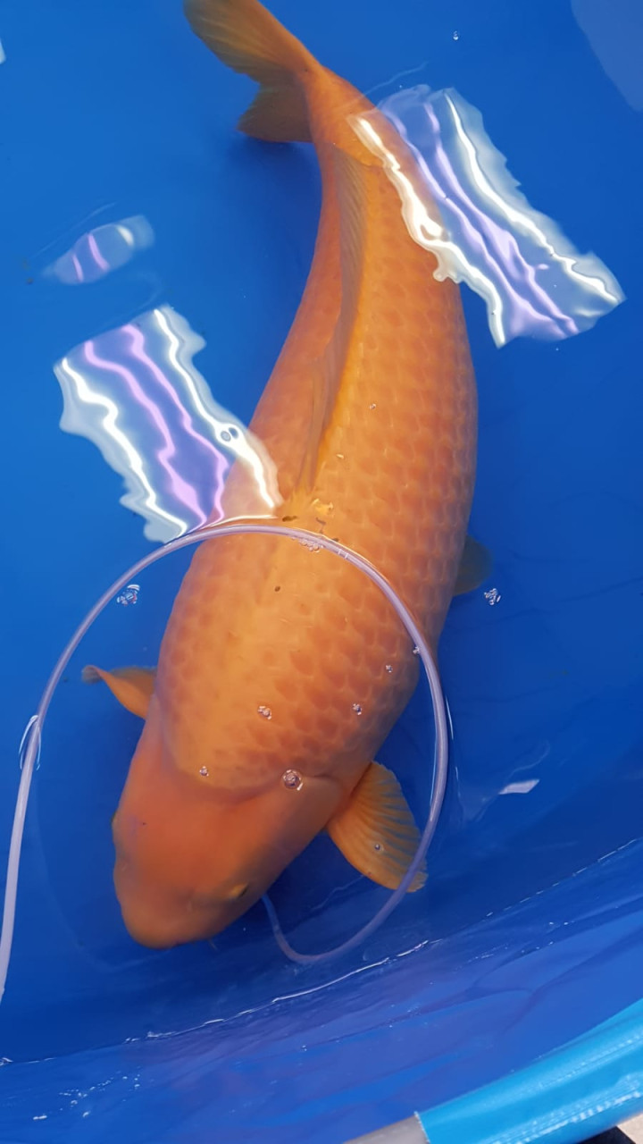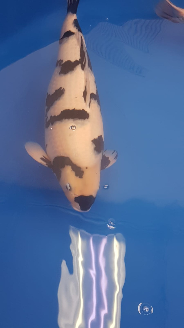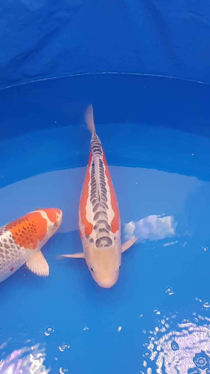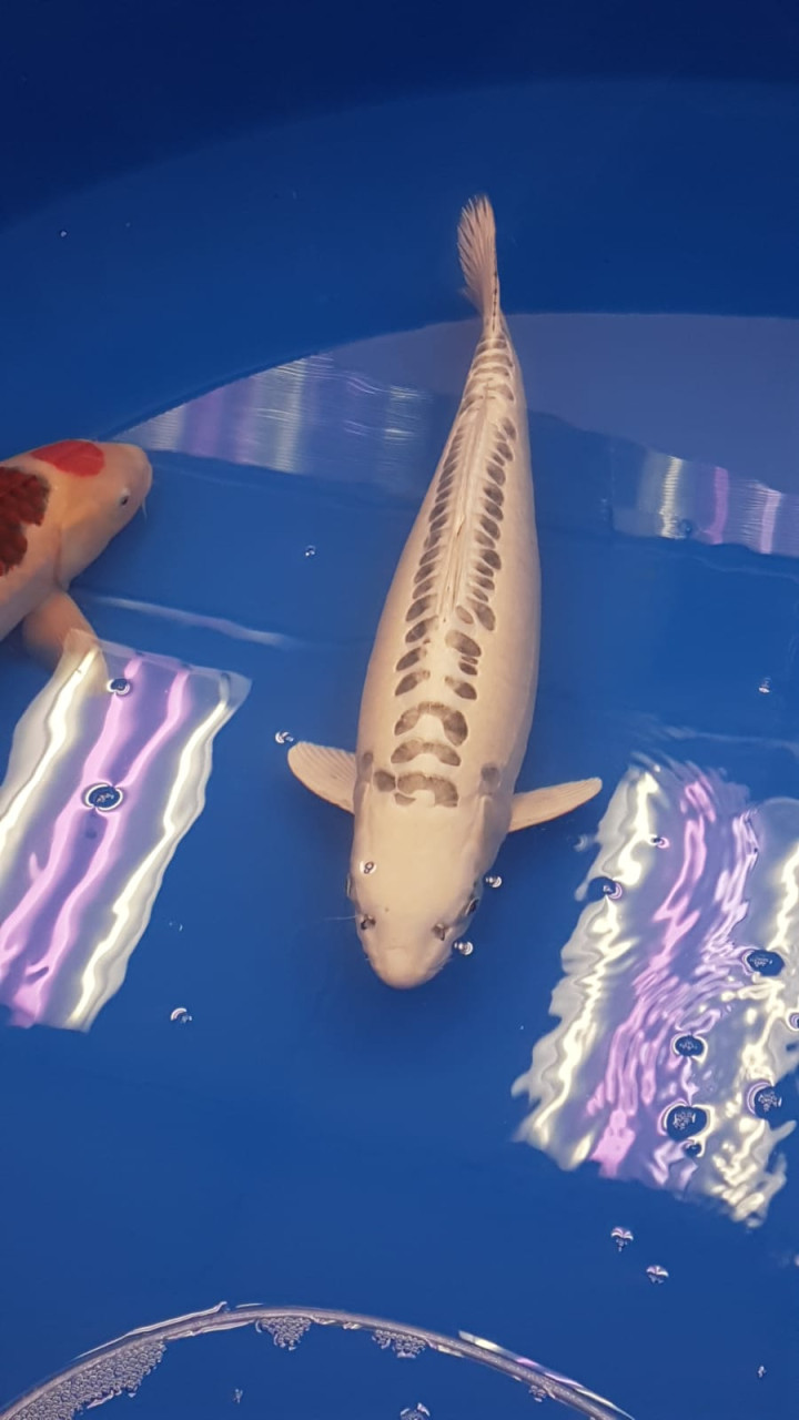 Un koyo femelle entre 70 et 75 cm de très belle posture, mais au final acheté par le groupe. j’ai alors retenu un superbe kumonryu mâle de 68cm âgé de 3 ans pour NORMANDIE KOI.
