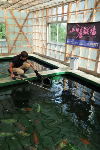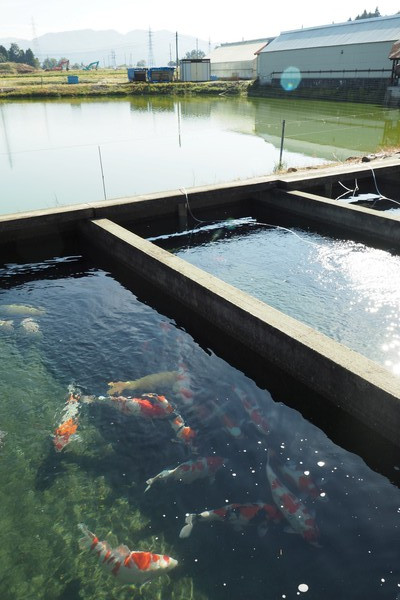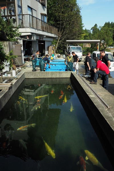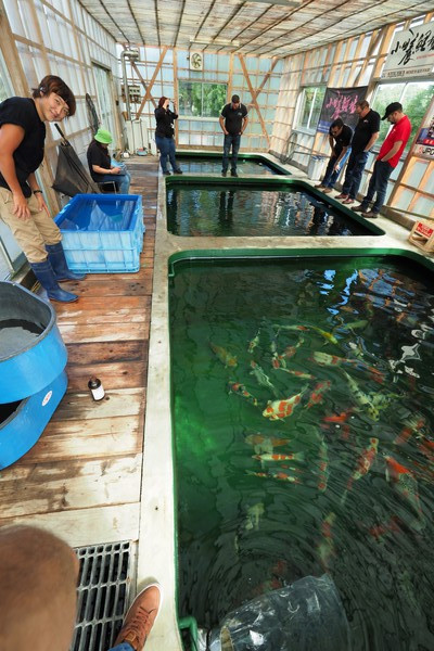 Tout d’abord nous sommes allés au petit matin après une bonne nuit de sommeil chez la Suda Koi Farm afin de sélectionner quelques Hirenaga (Koi voilés).