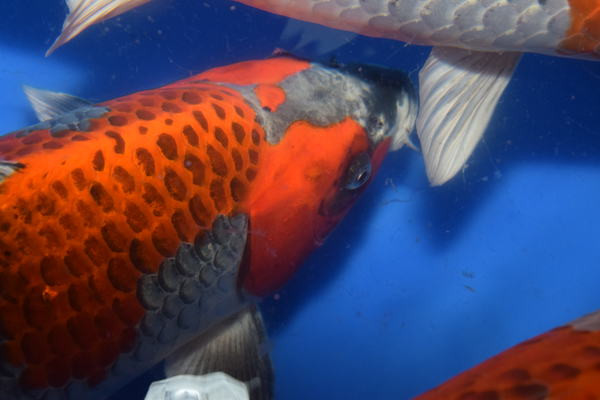 Il s’agissait de sansai mais aussi dans le deuxième mudpond de yonsai, Gosai et Koi plus âgés. Koi Zanmai était présent ainsi que d’autres grands noms outre Atlantique du Koi mais aussi le frère de Toshio qui possède la ferme Yamamatsu Koi Farm.