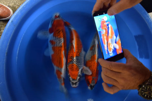 Très intéressé nous avons acheté quelques nisai et un magnifique Sansai VHQ. Nous avons également acheté des Ginrin Yuki Asagi, Narumi Asagi et Doitsu Karasugoi Sansai ainsi que quelques Nisai dont des Hana Shusui.
