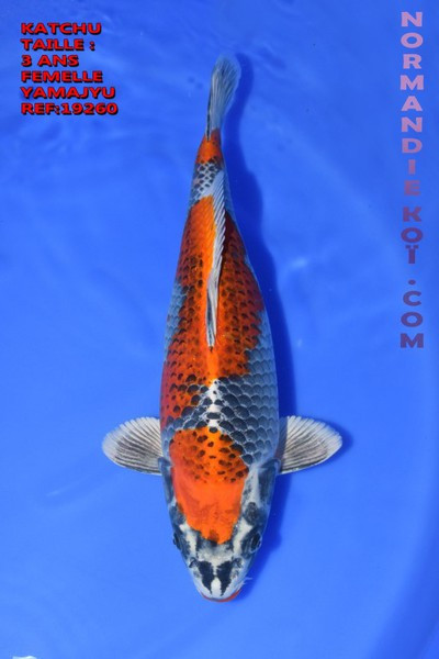 Elle résulte du croisement entre un Goshiki et un Kujaku. Certains sujets sont métalliques d’autres mi mats mi métalliques (Hanhangoi) et d’autres mats tout simplement. Katchu est le nom donné à l’armure des samuraï qui comprend aussi le casque (Kabuto).