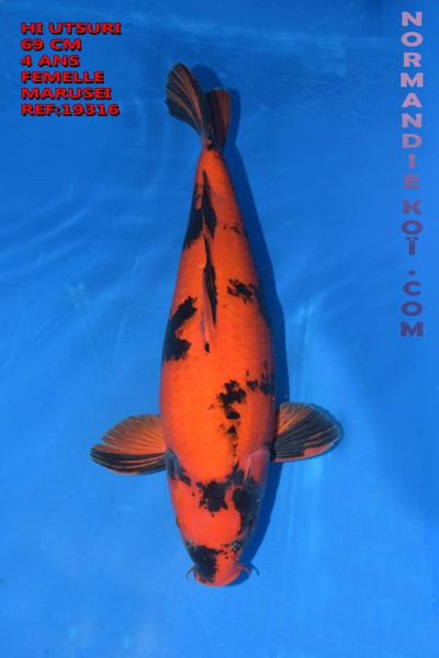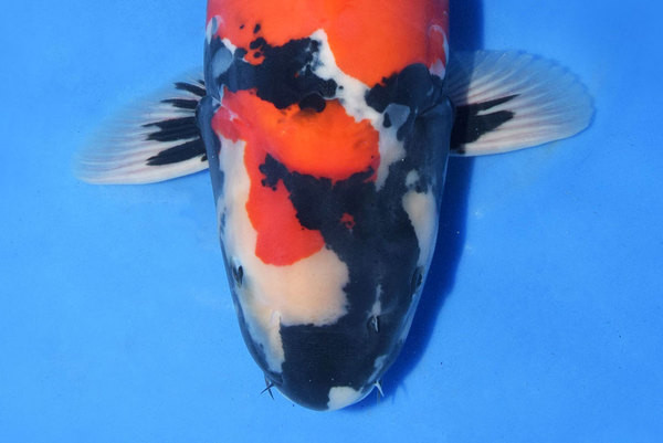 C’est une femelle à la tête longue et large ce qui nous laisse supposer que ce Koi sera très grand (plus de 80 cm), le body est bon, il a beaucoup d’épaule, le Beni est épais et le Sumi très intense.
