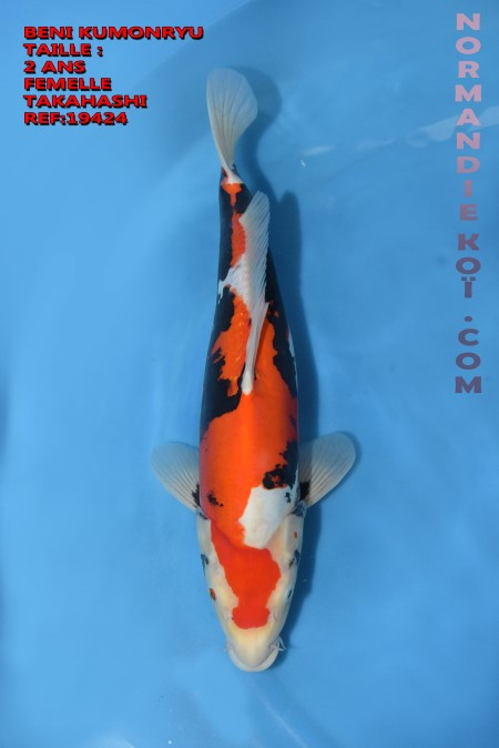Là nous avons sélectionné des Koi qui iront directement dans nos premiers budgets, très colorés (Kawarimono, Ginrin Showa et Doitsu Showa) puis nous avons pu prendre quelques Koi plus qualitatifs dans les Tategoi de Takahashi (Kumonryu, Beni Kumonryu, Doitsu Bekko, Doitsu Sanke & Tancho Ginrin Showa) que vous retrouverez dans notre gamme de prix moyenne
