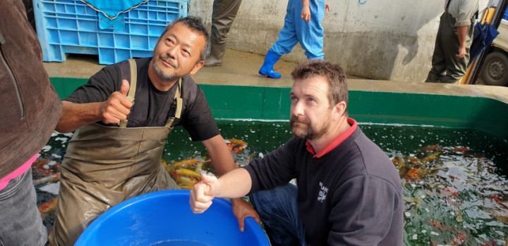 En 20min notre choix est fait, nous repartirons de la ferme avec 30 carpes koïs de 2 ans.