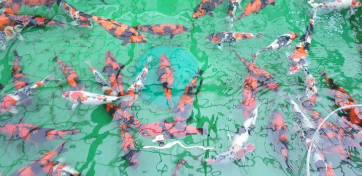 La ferme Kawakami vient de rentrer d’un ikeage. De ce fait là, nous profitons des nouvelles carpes koïs fraichement sorti de l’étang
