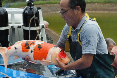 Une fois notre sélection terminé chez Ikarashi T, le troisième rendez-vous était chez Marudo koï farm ! Et là que dire... Toujours des spécimens impressionnant en terme de taille et en qualité. Mais nous devons voir les tosai avant tout ! C'est pourquoi nous avons fait une sélection de Gosanke ! Vraiment d'une superbe qualité, nous faisons la demande pour du Chagoi également et à notre bonne surprise nous avons réussi à avoir un box ! Il y auras chez Normandie koï en Avril du Doitsu Chagoi, Ginrin Chagoi et Chagoi Wagoi !! Nous sommes très content de cette journée d'achats !