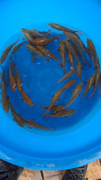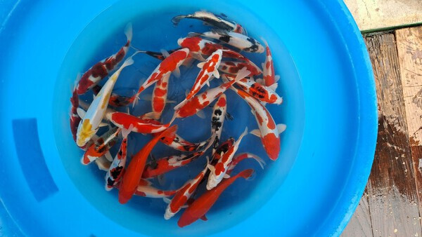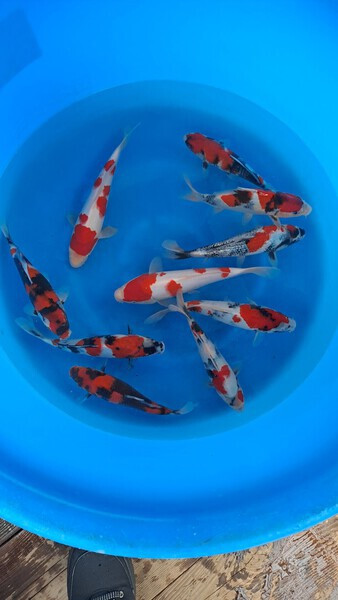 Un bac avec des koï de jolie taille retient notre attention, nous faisons donc un jolie mix avec pas mal de variétés différentes comme Benigoi, Goromo, Hariwake, Kumonryu...