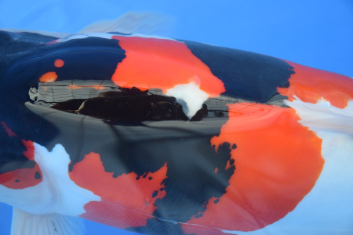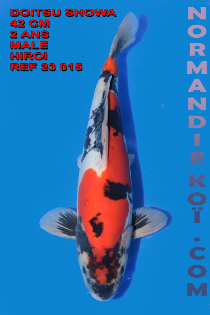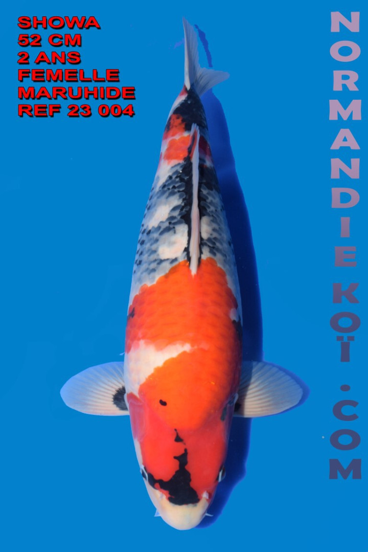Bon, maintenant, changeons de décor, direction Hiroi koi Farm. Après la visite des bassins, et une inspection générale, nous découvrons un magnifique doitsu showa de 3 ans, de 52 cm, avec une très belle évolution en perspective.