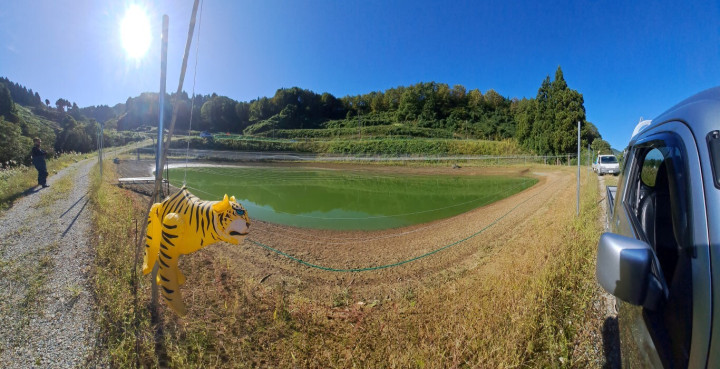 Allez, c'est parti, nous montons en voiture, en direction de Yangenji, où nous allons commencer la matinée par un Ikeage d'un mud pond avec des Karashigoi.