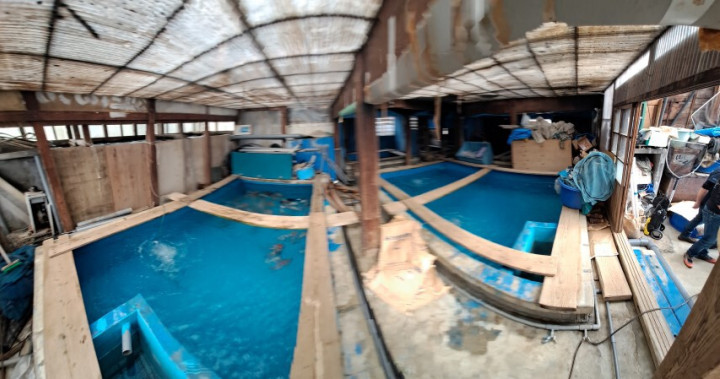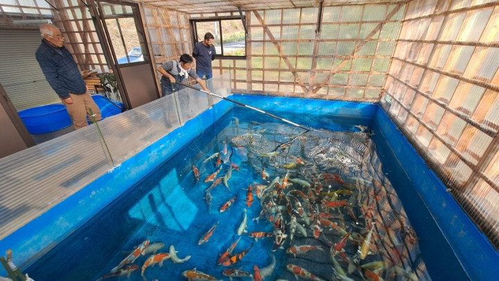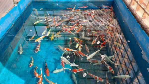 Nous demandons à aller visiter la serre un peu plus loin, où sont entreposées les koi de 3 ans.