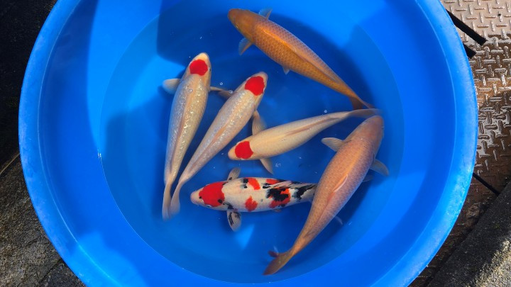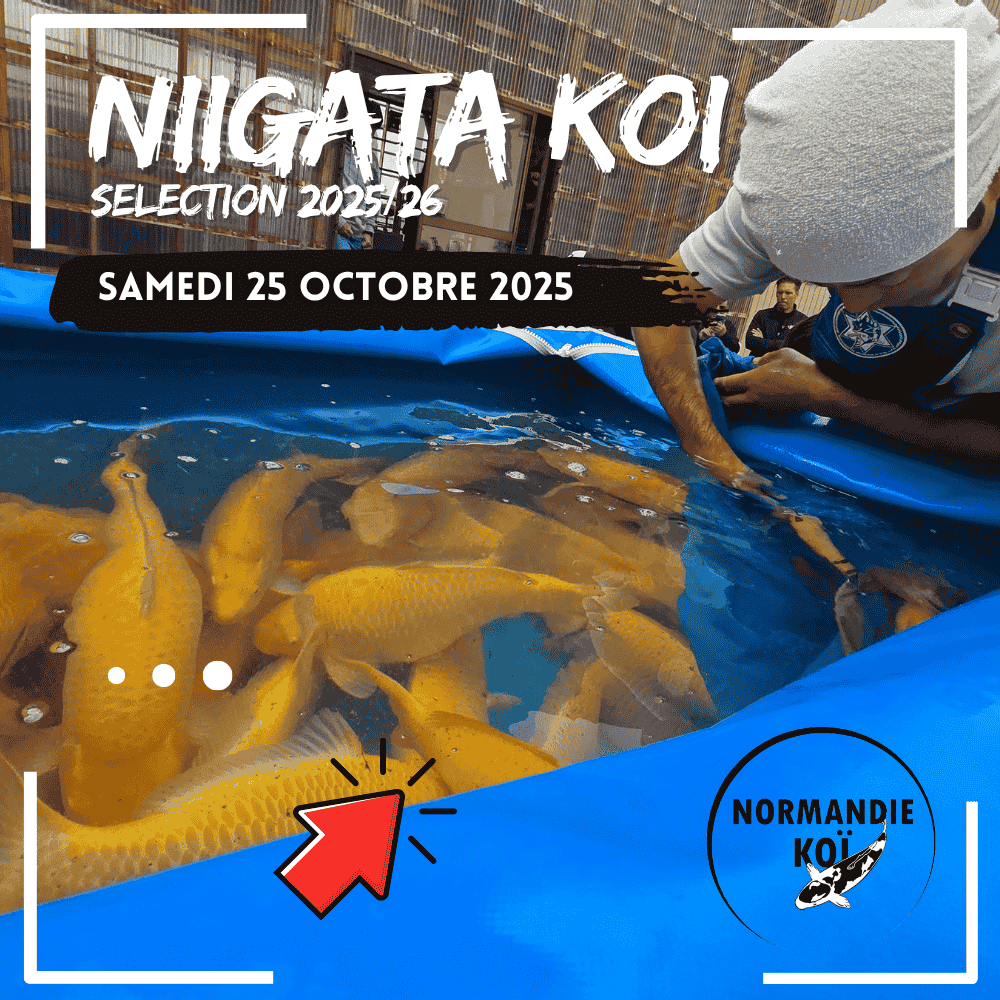 Nous y sélectionnons plusieurs poissons au rapport qualité/prix exceptionnel, ainsi qu’un Doitsu Shiro utsuri au patron unique et un Doitsu showa à la peau d’une pureté rare.