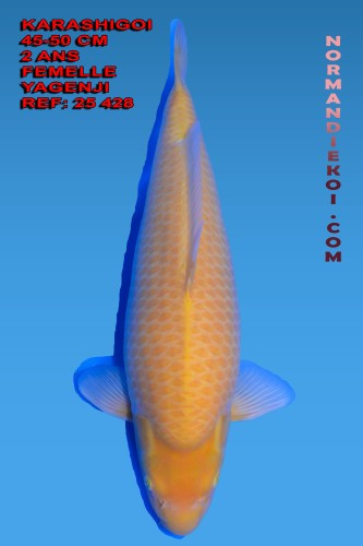 Après une sélection minutieuse, nous choisissons une magnifique femelle Karashigoi d’environ 50 cm, âgée de deux ans, au corps parfait et à la couleur éclatante.