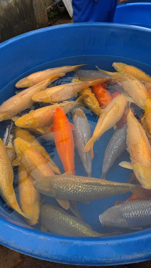 Nous sélectionnons cinq Koi superbes, mesurant entre 60 et 70 cm. Malheureusement, les tarifs annoncés sont trop élevés, et nous décidons de ne pas les acquérir. Une décision raisonnable, même si ces poissons resteront dans nos mémoires.