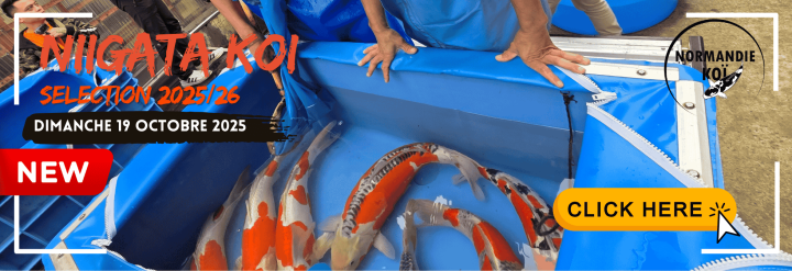 Ce dimanche 19 octobre 2025, la journée débute chez Yagenji Koi Farm. La veille, nous avions appris que l’éleveur allait effectuer la vidange de ses bassins de Sansai (3 ans), une occasion rare d’admirer des sujets d’exception.