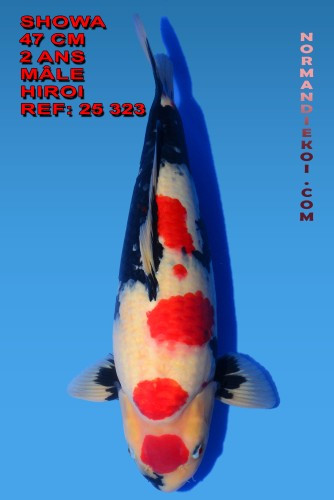 La journée s’achève chez Hiroi. Nous retrouvons un Showa atypique, repéré lors d’un précédent passage. Après observation dans un bowl, sa qualité se confirme : un Tancho Showa à la tête rouge intense, un Doitsu Sanke élégant et ce Showa “coccinelle”, unique, au contraste saisissant entre rouge et noir.