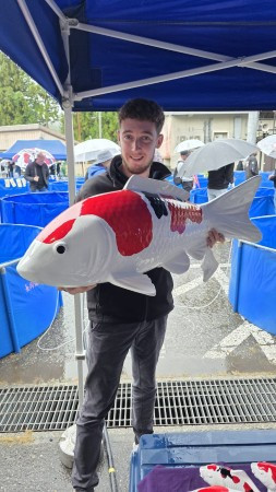Les bassins scintillent de mille couleurs : Kohaku, Showa, Sanke, tous rivalisent d’élégance et de perfection. L’atmosphère est fascinante, entre admiration, échanges techniques et passion commune.