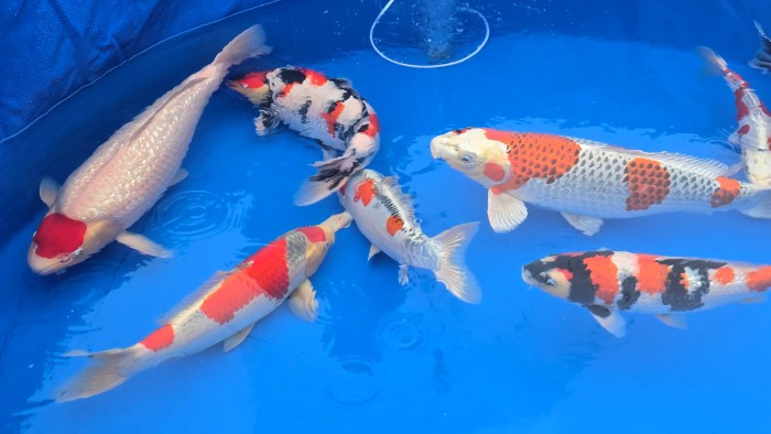 Nous débutons la matinée par une visite chez NND (Nishikigoi Niigata Direct). L’un des azukari (koï laissés au Japon pour continuer leur croissance) attire immédiatement notre attention : un Sanke de 61 cm, impressionnant par sa puissance et la qualité de sa peau.