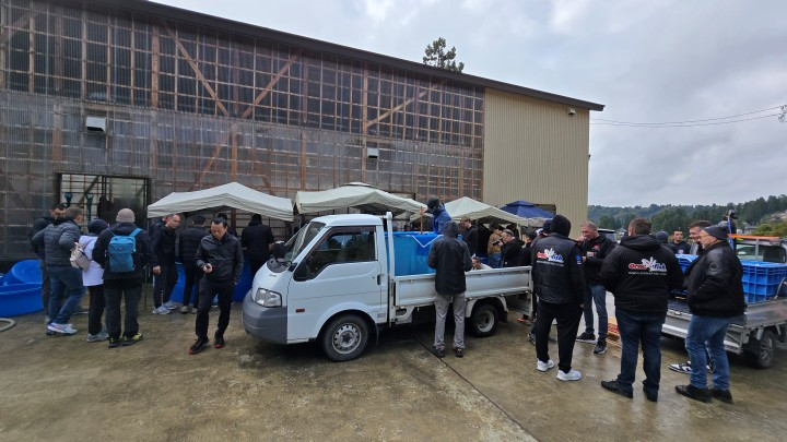Plus tard dans la journée, direction le Event Breeders, un rassemblement unique regroupant les éleveurs de tout Niigata. Les poissons sont présentés soit en bassins, soit en sacs individuels, avec les prix affichés directement.