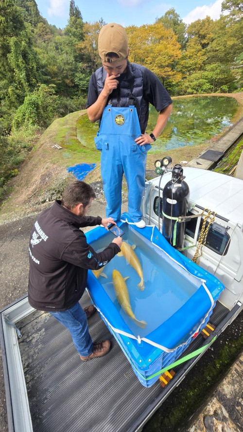 Nous terminons cette intense journée chez Maruhiro, où nous sélectionnons 11 Nisai, des koi de deux ans aux motifs variés et originaux.