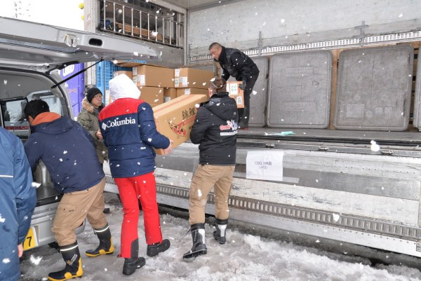 Depuis toutes ces années à venir au Japon, c’est la première fois que j’assiste au chargement des cartons de koï dans les camions, direction l’aéroport de Haneda à Tokyo. Un moment impressionnant. Les petites camionnettes arrivent les unes après les autres dans un créneau horaire parfaitement défini.