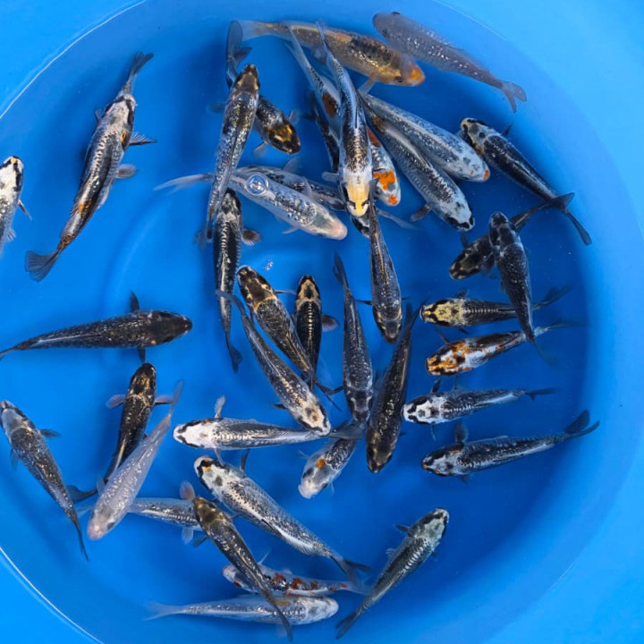 Je suis vraiment très satisfait de cette sélection. Les Goromo sont particulièrement intéressants, avec un shiroji très puissant. On pourrait presque les confondre avec des Kohaku à ce stade, mais la couleur va parfaitement évoluer avec le temps.