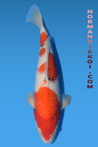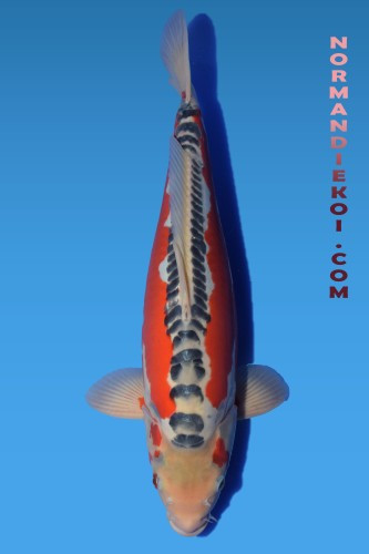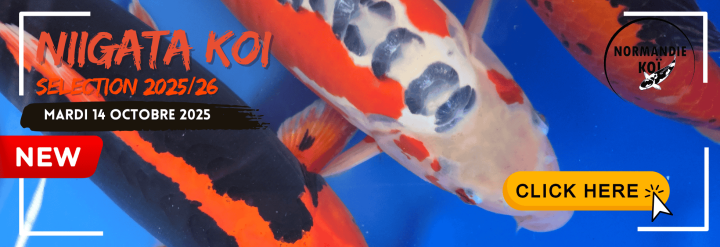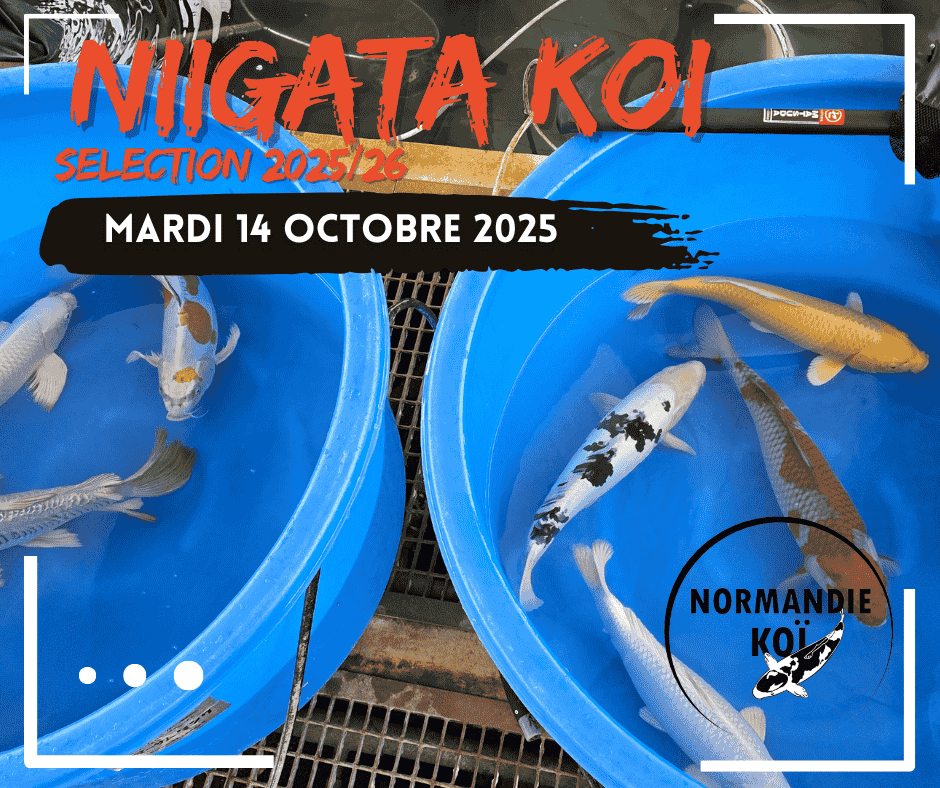 Parmi elles, deux superbes Beni Kumonryu Wagoi nous séduisent particulièrement. Leur évolution promet d’être fascinante : pour l’instant, le noir n’est que peu visible, mais avec les eaux plus dures de Normandie, la couleur foncée devrait rapidement apparaître, transformant totalement leur apparence.