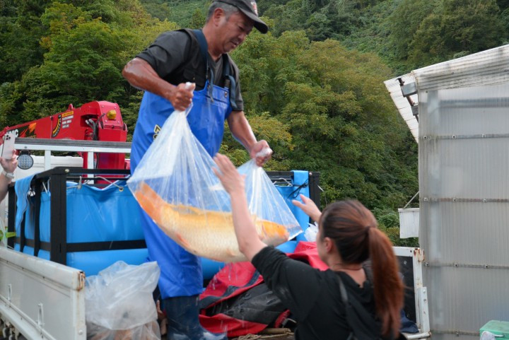 La journée se clôture chez Marusei Koi Farm, où nous avons eu la chance d’assister à un arrivage exceptionnel de koi fraîchement sortis des bassins de ponte.