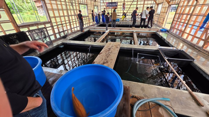 Lors de notre passage dans la région de Niigata, nous avons décidé de rendre une visite surprise à la célèbre ferme Ooya, reconnue pour être l’une des meilleures producteurs d’Asagi du Japon. Et quel meilleur endroit pour choisir ces superbes spécimens !