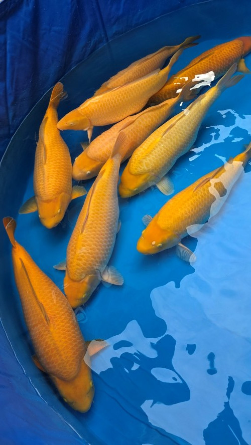 Ces trois magnifiques poissons viendront enrichir notre sélection Normandie Koi, témoignant une fois encore de notre passion pour les plus belles lignées japonaises.
